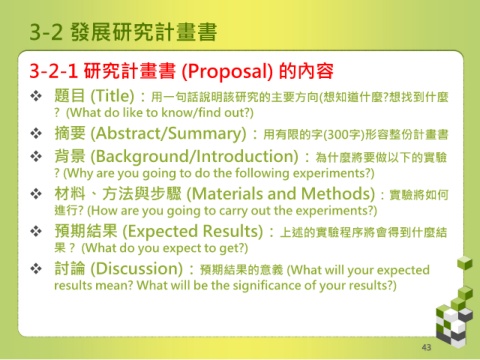 3-2-1 研究計畫書 (Proposal) 的內容