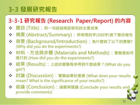 3-3-1 研究報告 (Research Paper/Report) 的內容
